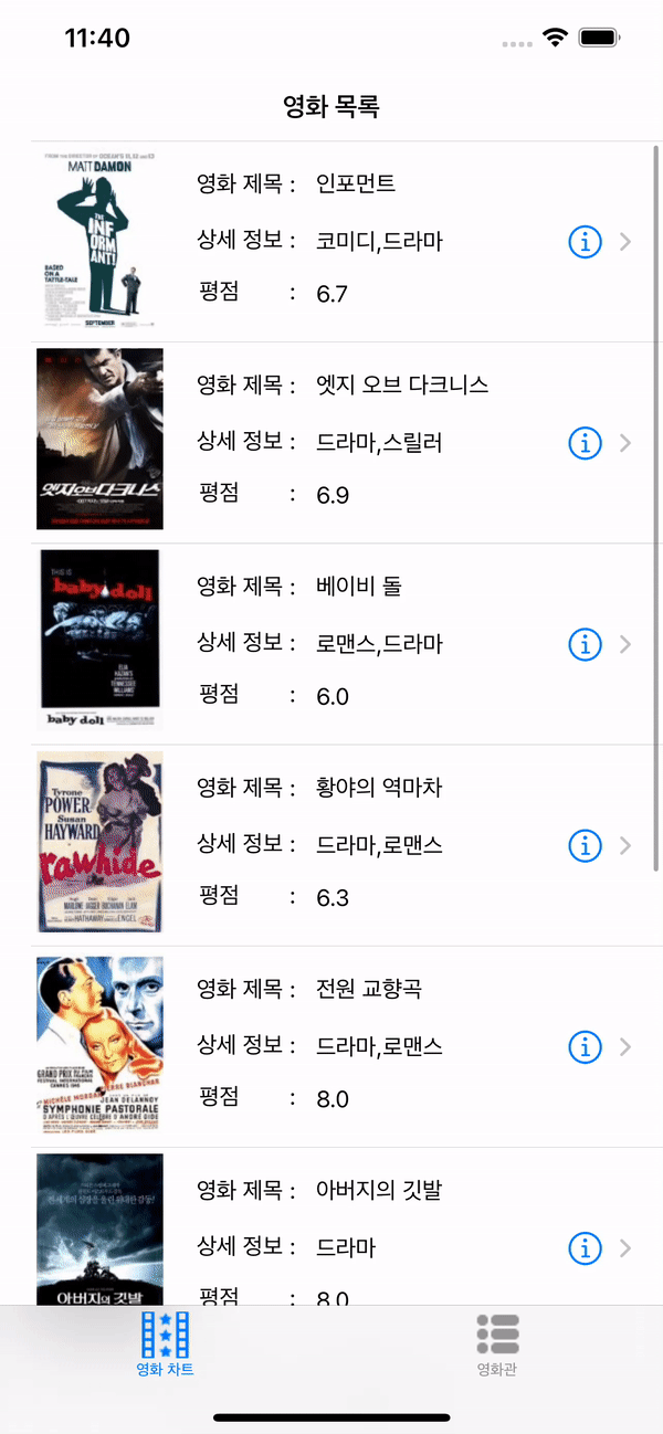 그렇게 구성된 여러개의 셀이 tableView(_: cellForRowAt:)에 의해 tableView의 Cell로 삽입됩니다.