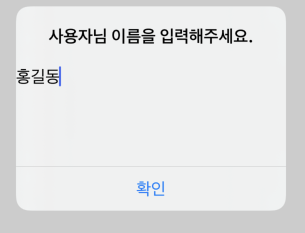let alert = UIAlertController(title:"사용자님의 이름을 입력해주세요.", message: nil, preferredStyle: .alert)