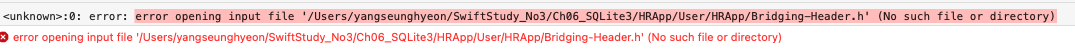 프로젝트 TARGET -> Build Settings -> Swift Compiler - General -> Objective-C Bridging Header 경로를 Brindging-Header.h 파일이 있는 경로에 맞게 잘 설정해주어야 한다.