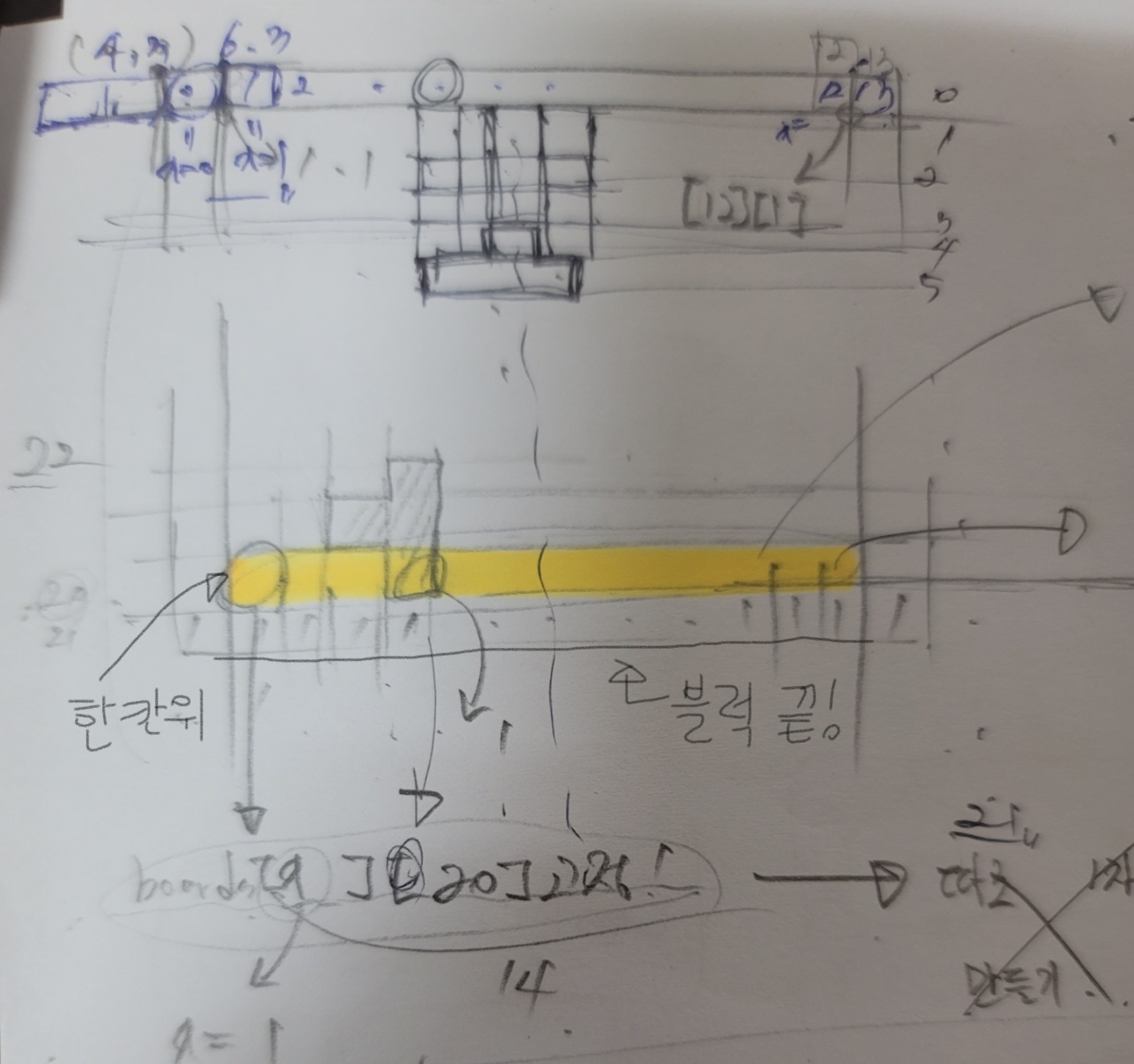 - 블럭이 보드 하단에 쌓인 바닥임을 인지할 수 있는 로직 필요