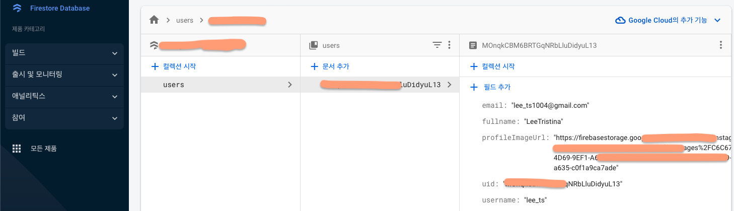 users 컬랙션의 문서는 uid로 등록했다. 문서의 필드는 JSON으로 아래와 같은 형식으로 사용자의 정보를 담도록 했다. Codable의 개념을 모른다면 이전 블로그에서 설명했는데,, 자세한건 공식 문서가 최고다.