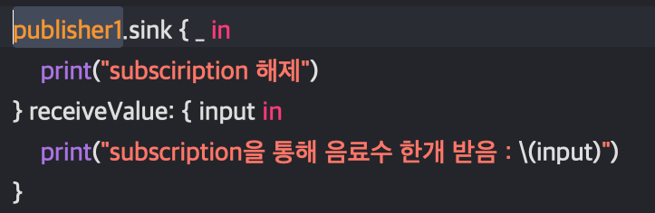 sink(_:) 함수는 클로저를 통해서 subscriber를 부착하는 형태입니다. 간단합니다!