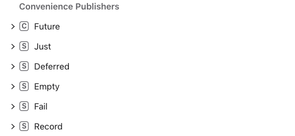 (참고로 이들은 Convenience Publisher이기 때문에 Publishers.sequence 등 Publihsers를 붙이지 않아도 됩니다!)