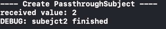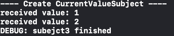위에서 설명한 대로 subscriber가 없어도 가장 최근에 send 한 값 1을 subject3.value에 저장하고 있기 때문에 subscriber에게 value 값을 전달합니다.