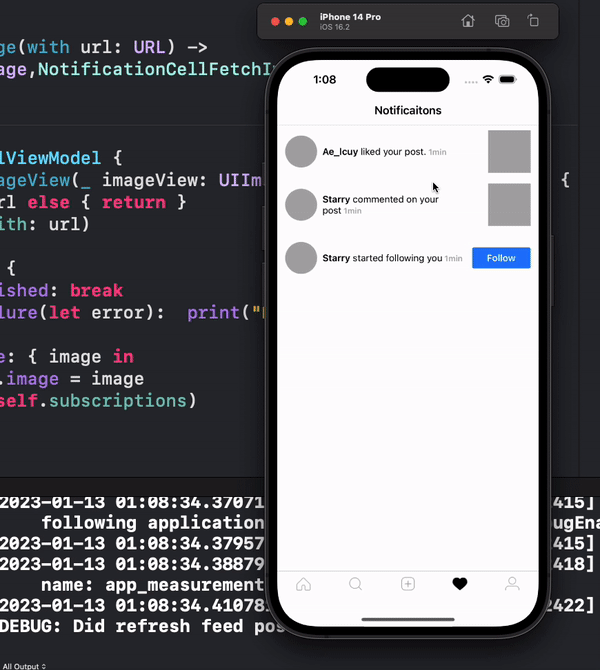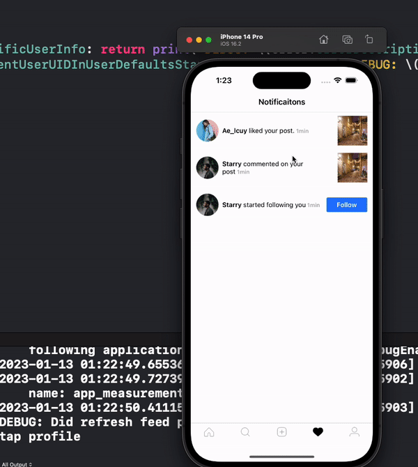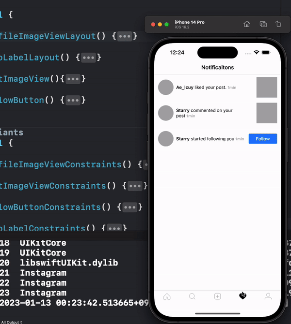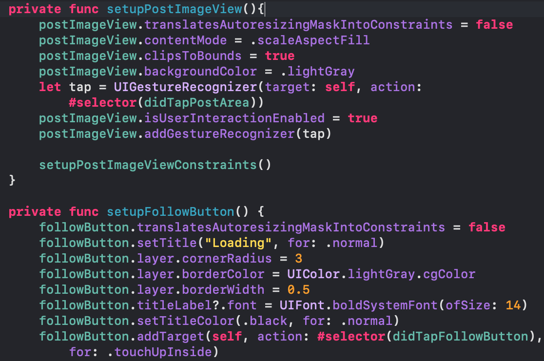 이 함수를 이용해 혹시나 덮여서 액션 response가 오지 않을 수도 있겠다고 생각했습니다. 프로필 이미지뷰, 포스트 이미지뷰, 팔로우 버튼 셋 다 bringSubviewToFront()를 통해 앞으로 꺼냈고 버튼은 다행히 반응이 잘 되는데 아직도 이미지들에 부착된 addTarget이 작동하지 않았습니다.