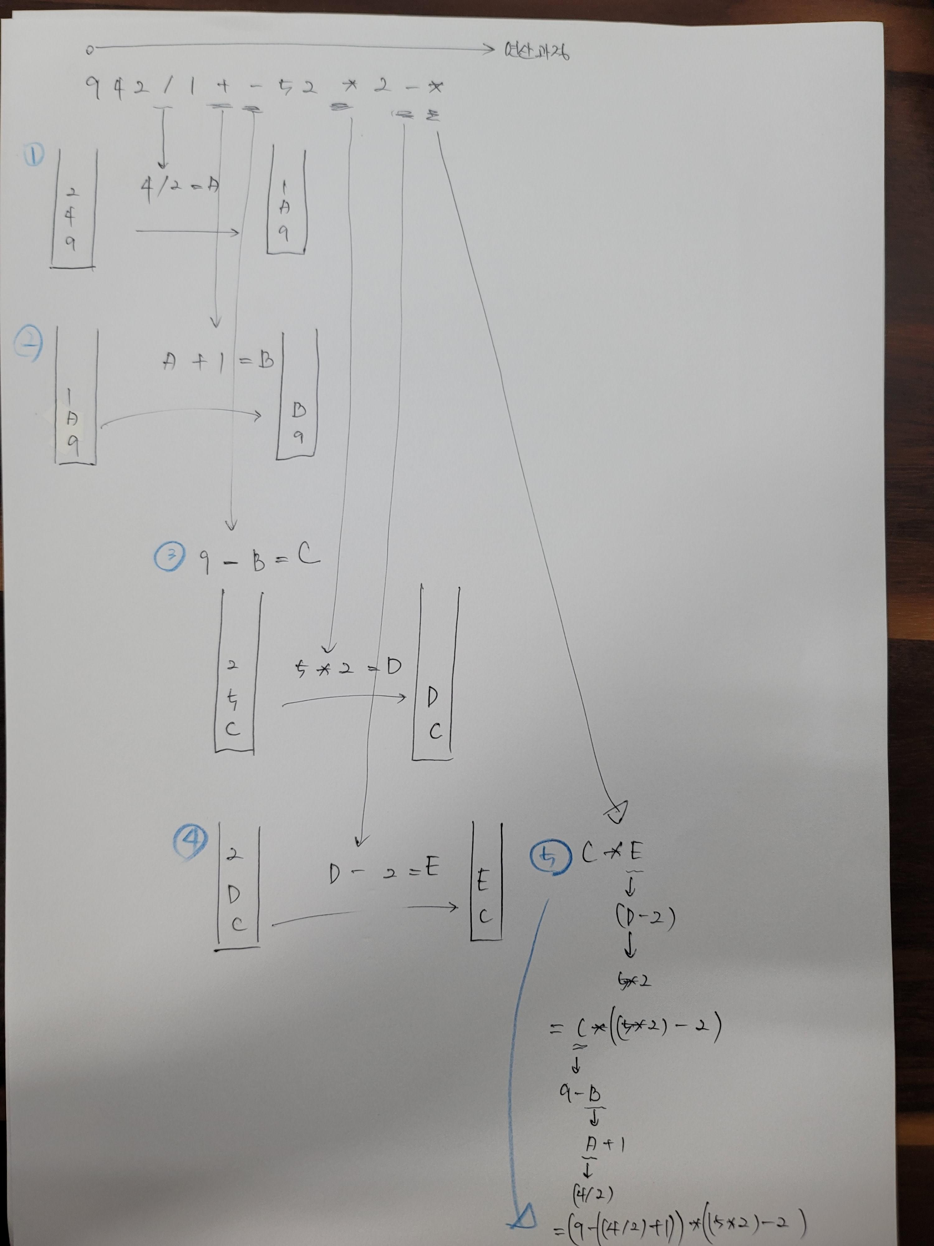 ( 9 - ( (4 / 2.... 에서 첫번째 문자(괄호)인 ' ( ' 는 무시하고 두 번째 문자(피연산자) 9를 출력합니다. //출력 상태 : 9