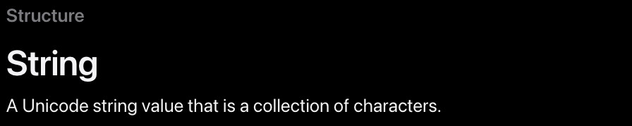 String. 문자열 입니다. 정말 많이 사용합니다. Swift에서 제공되는 기본 자료형에 속합니다. Swift's Standard Library에 속합니다. 그래서 import Foundation 없이도 사용할 수 있습니다.