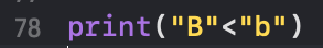 따라서 "B"는 "b"보다 작습니다. 그렇기에 "B"와 "b"는 같은지 비교를 하면 false 처리됩니다.