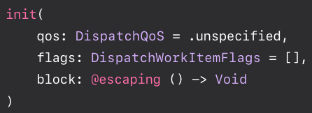 /// 인자값 옵션 세팅 할 경우 DispatchWorkItem(qos: .background, flags: .barrier) { ... }