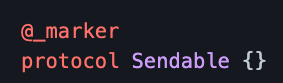 @_marcker protocol가 표기된다는 것은 Runtime에 영향을 미치지 않고 static complie tiem에 동작되는 개념입니다. is or as로 타입체크가 불가능하고 non-marcker protocol로부터 상속받을 수 없습니다.