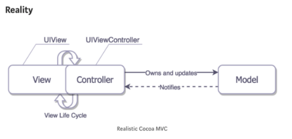 MVC pattern 개념 포스트에서 realistic mvc pattern 그림을 볼 수 있었는데, View와 Controller가 결합되어 있습니다. View와 Controller의 분리가 완벽하지 않습니다.