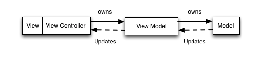 MVP와 마찬가지로 View/ViewController를 View layer로 봅니다. View와 Model을 분리했고 MVP처럼 View에서 일어나는 user interaction을 ViewModel에서 처리 후 view에게 notify합니다. ViewModel이란 말 그대로 View에서 필요하는 데이터를 model에서 가져와 가공한 후에 view한테 제공하는 역할입니다.