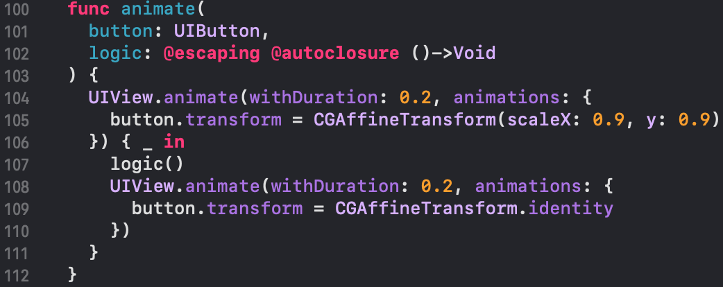 showDateButton, hide DateButton은 각각 터치 될 때마다 이 이벤트 헨들러를 addTarget으로 달아줬습니다. 이 각각의 버튼이 터치될 때마다의 로직은 ViewController에서 처리를 하지 않고 위에서 정의한 viewModel의 transform() 함수 내부에서 특정 input 매개변수 구조체의 publihser에 operator (map, throttle등) 를 달아서 처리를 한 후에 그 흐름을 이어서 downstream인 output publihser로 보내주는 것입니다.