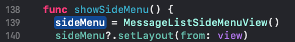 sideMenu는 옵셔널로 할당했습니다. 그리고 showSideMenu라는 함수를 실행할 때마다 인스턴스 할당을 했습니다.