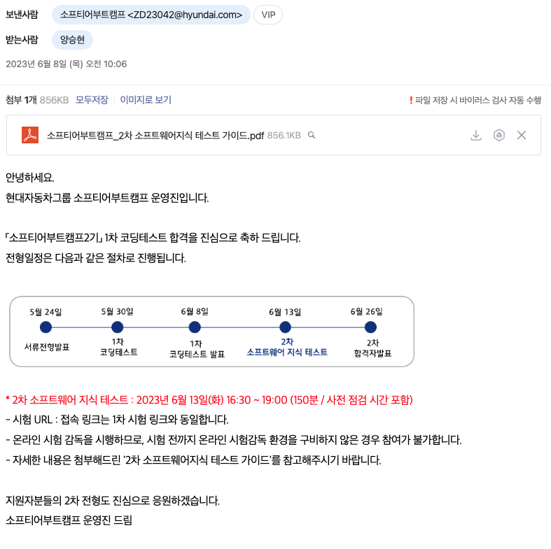 이후 1차 평가, 2차 평가 모두 메일을 통해 자세하게 확인할 수 있습니다.