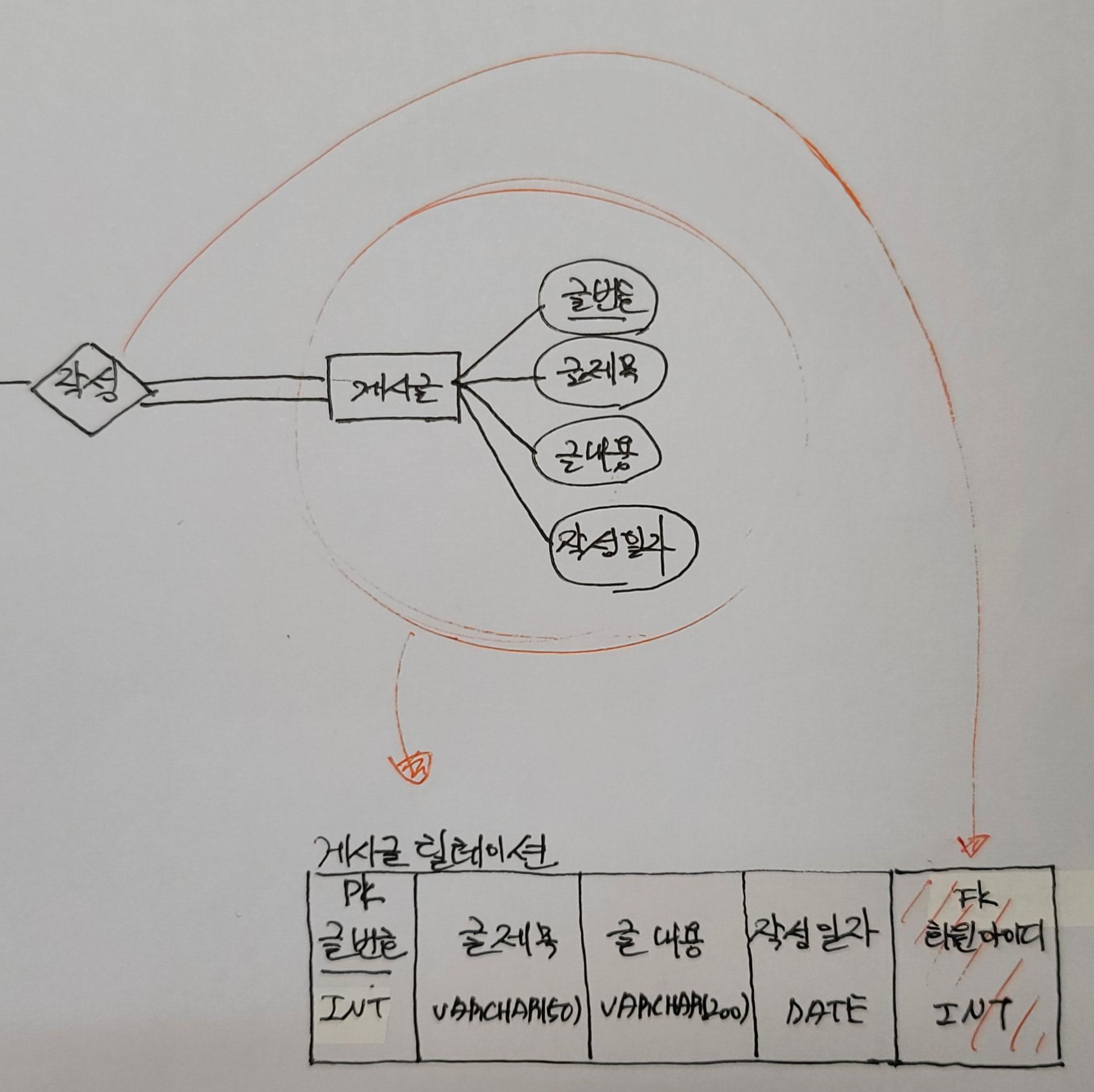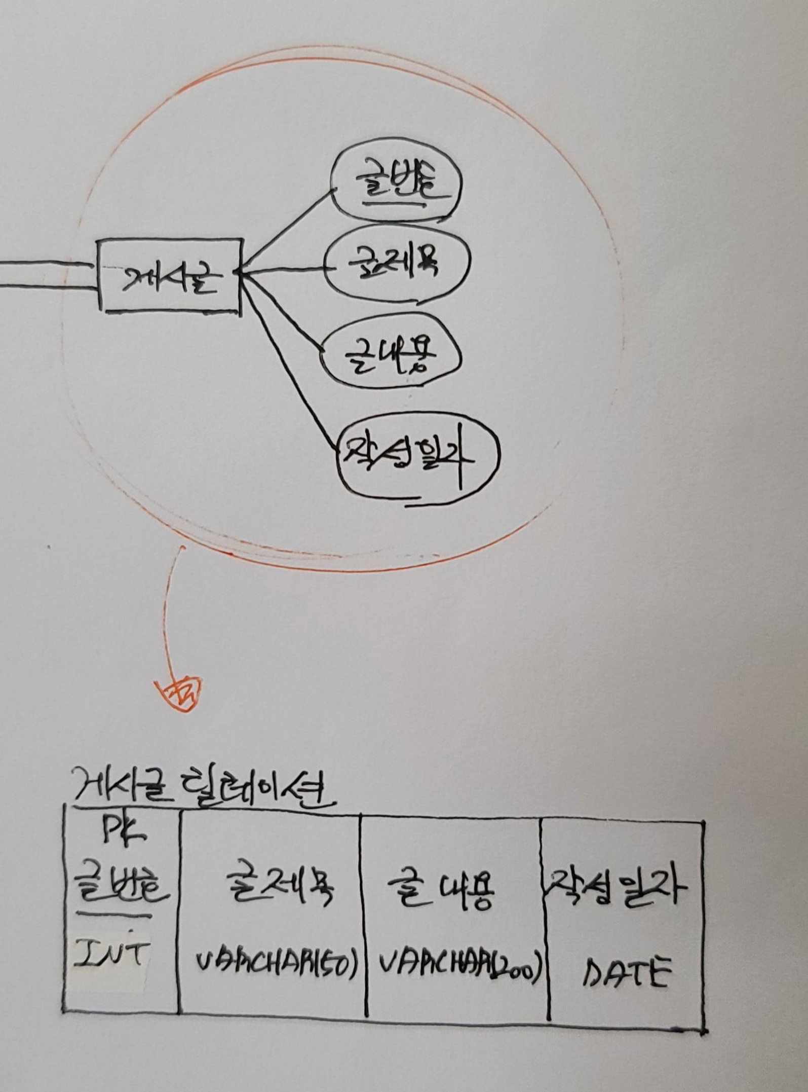 | 게시글 | 글번호, 글제목, 글내용, 작성일자 |