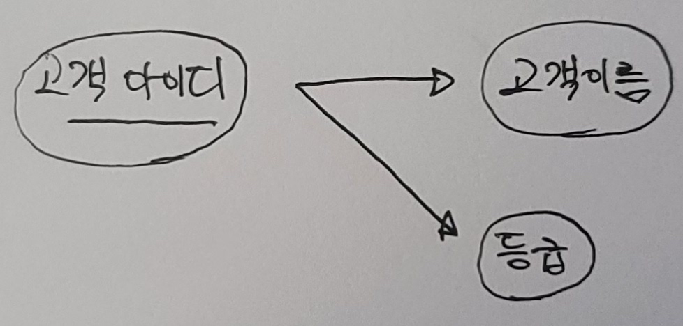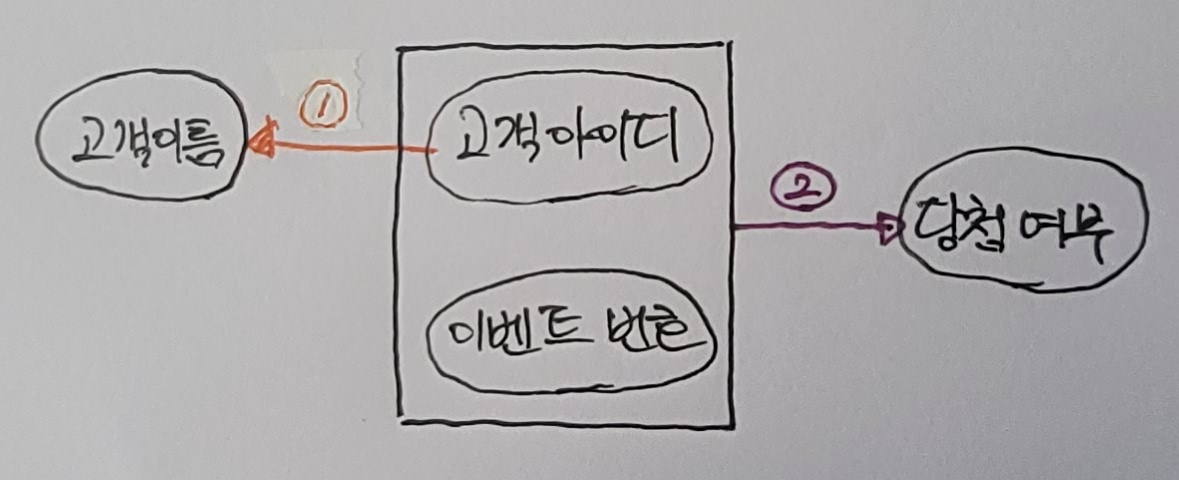 ex) {고객 아이디, 이벤트 번호} -> 고객 이름