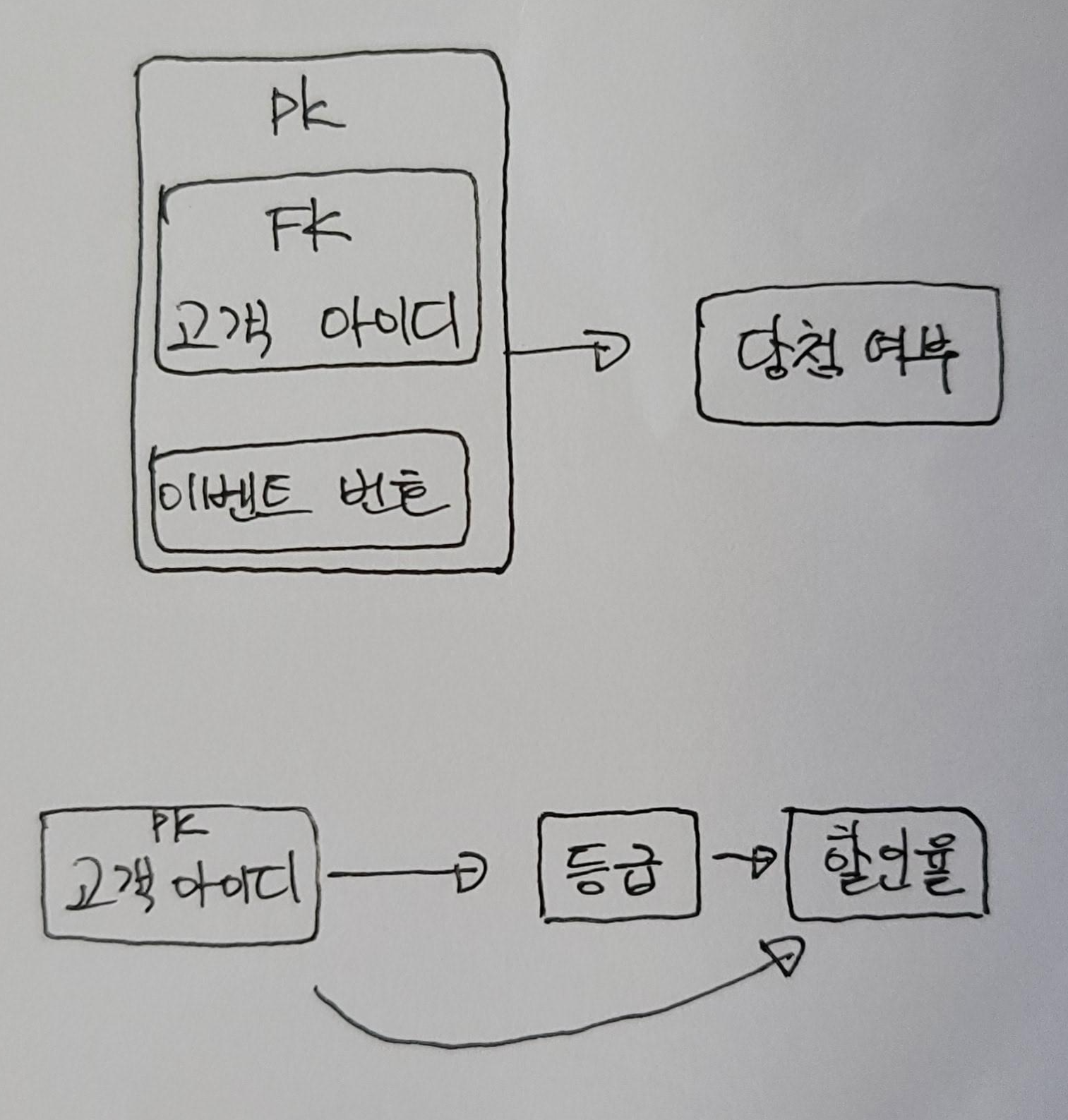 | 고객아이디(FK) | 이벤트번호 | 당첨여부 |