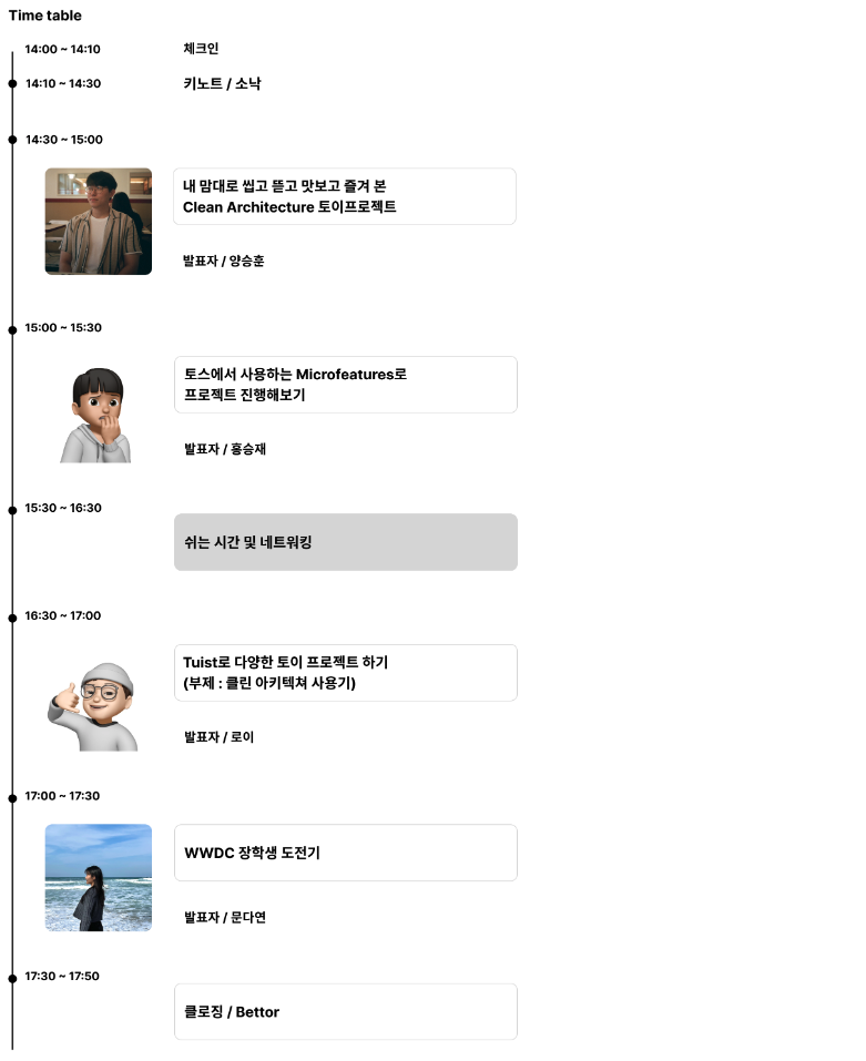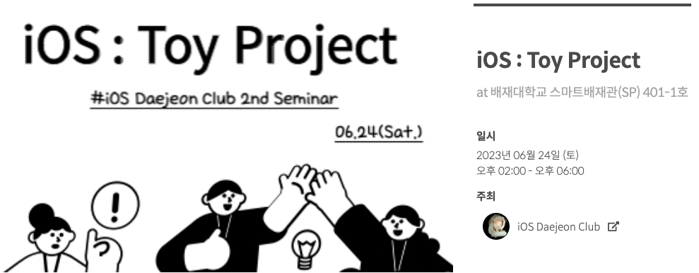 안녕하세요. 23.06.24일에 iOS Daejeon Club 에서 주최한 2nd seminar를 참석했고, 후기를 작성하려고 합니다. 저는 iOS개발에 관심이 많고 열심히 꿈을 향해 쫓아가고 있는 학생입니다: ] 친한 형이 iOS 세미나가 대전에서 열린다는 소식을 처음 듣게 되었을 때 정말 가보고 싶다는 생각이 들었습니다. 그렇게 이번 세미나에 참석하게 되었습니다.