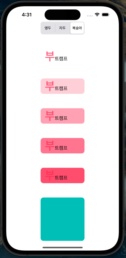 위 사진은 1주차 때 구현한 기능 과 살짝? 많이 달라서 미션의 초안도 아니긴한데, 이번주 안에 주어진 미션에 대한 기능을 다 끝낼 수 있을 지 모르겠네요. 화면 하나 만드는데 코드가 왜 이렇게 많이 만들어졌는지 모르겠습니다. 약간 소름돋은게 있는데 뭐 [앵두 자두 복숭아 ]컴포넌트 높이가 44인데 음 나머지는 자유? 그리고 마지막날 밀린 기능 구현할 때 어 왜 안되지를 5시간정도 고민한 끝에,, 아 맞다 상위뷰가 터치되야하지,, 잠깐 잊었던 기억을 꺼내고.. 그럼에도안되네? 음... ? 계속 생각하던 끝에 해결하게 됬는데....... 44라니 ㄷㄷ..