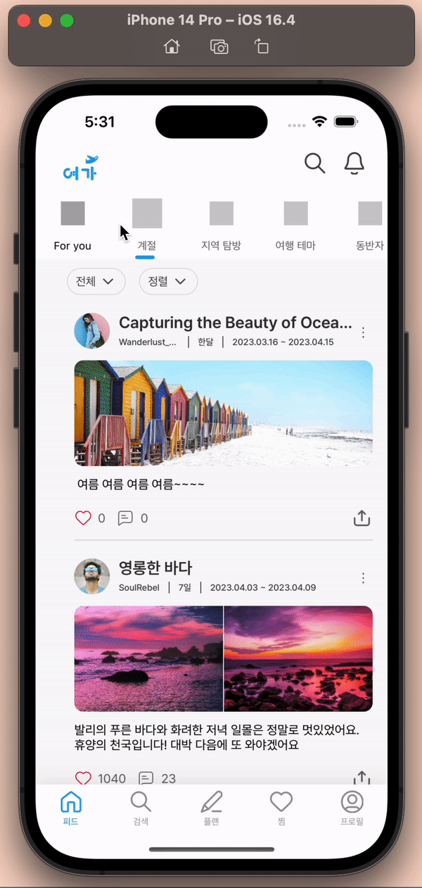 지금 생각해보니 단순히 화면 구현은 어렵지 않았지만 캐싱 처리랑.. 재사용 큐에서 cell이 꺼내질 때 초기화 + 캐싱처리를 잘 해야겠다는 생각이 들었습니다. 저 화면에서 사실 3개의 컬랙션 뷰를 썼는데 큰일이네요. 실제 서버에서 데이터를 받아오면 어떤 일이 발생될지 모르겠습니다ㅠㅠ.
