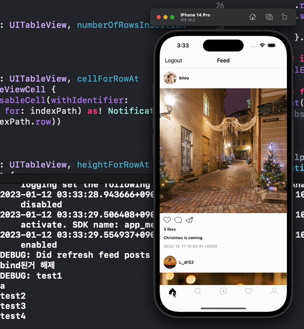 희안하게 저 혼자 했던 프로젝트에서 Feed post Cell's vm의 바인딩을 cell한테 단 한 번 해줬는데. 그리고 viewWillAppear시점에는 아무것도 안했습니다. 이때 다른 화면으로 갔다가 다시 특정 화면으로 되돌아 올 때 cell에 바인딩이 2배로 늘어난 다던가,, (이 경우 에 대한 문제 발생 원인과 해결 방법 정리 글)
