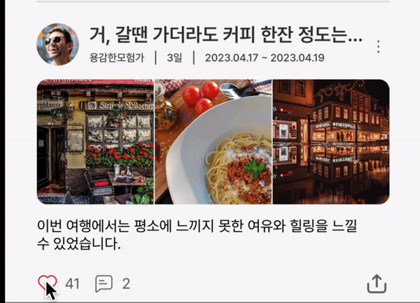 1. 특정 포스트에 대한 id를 기반으로 서버에 통신을 합니다. (서버야 나 하트 눌렀는데 특정 포스트 하트 상태를 변경해줘!!)