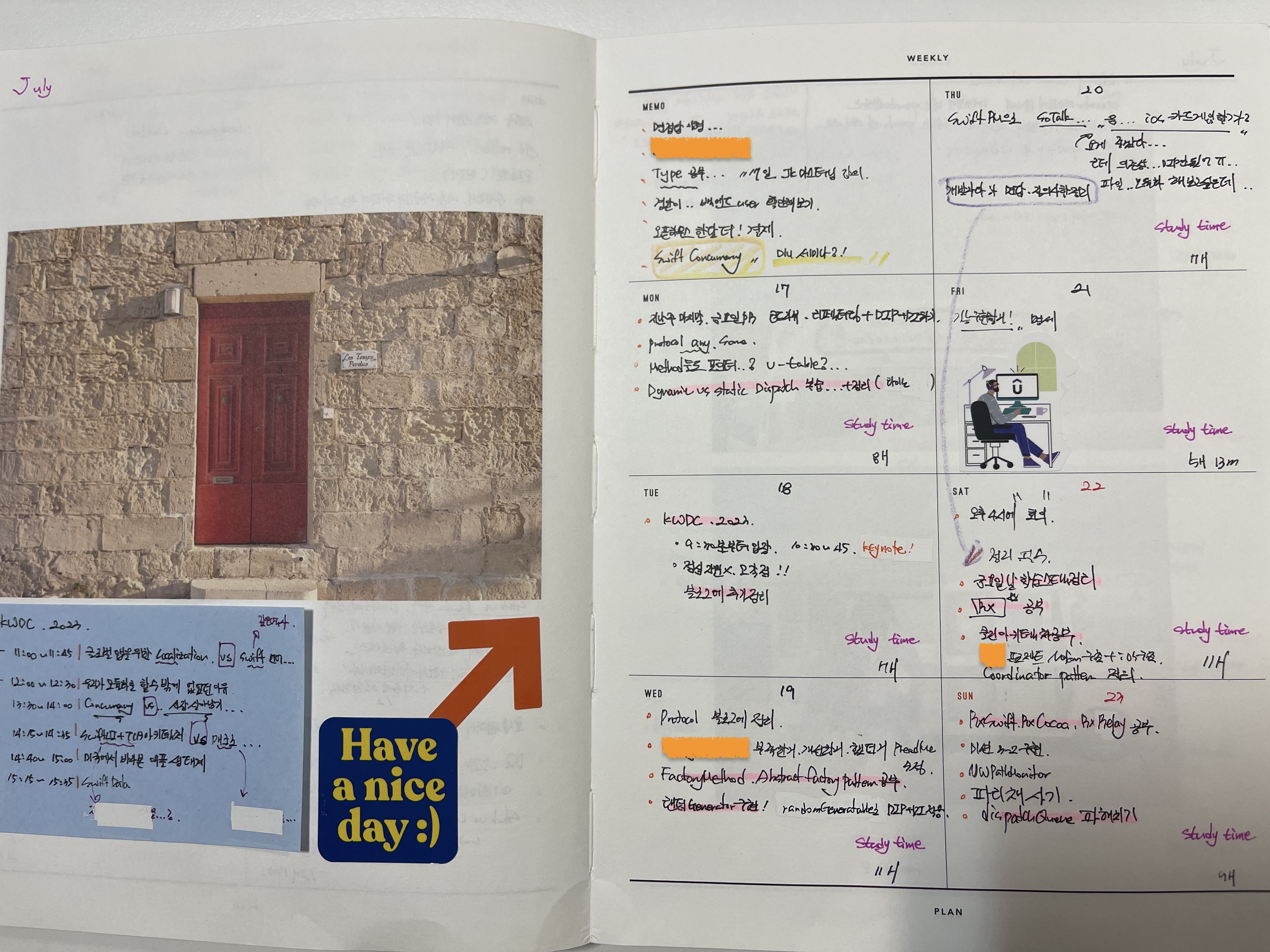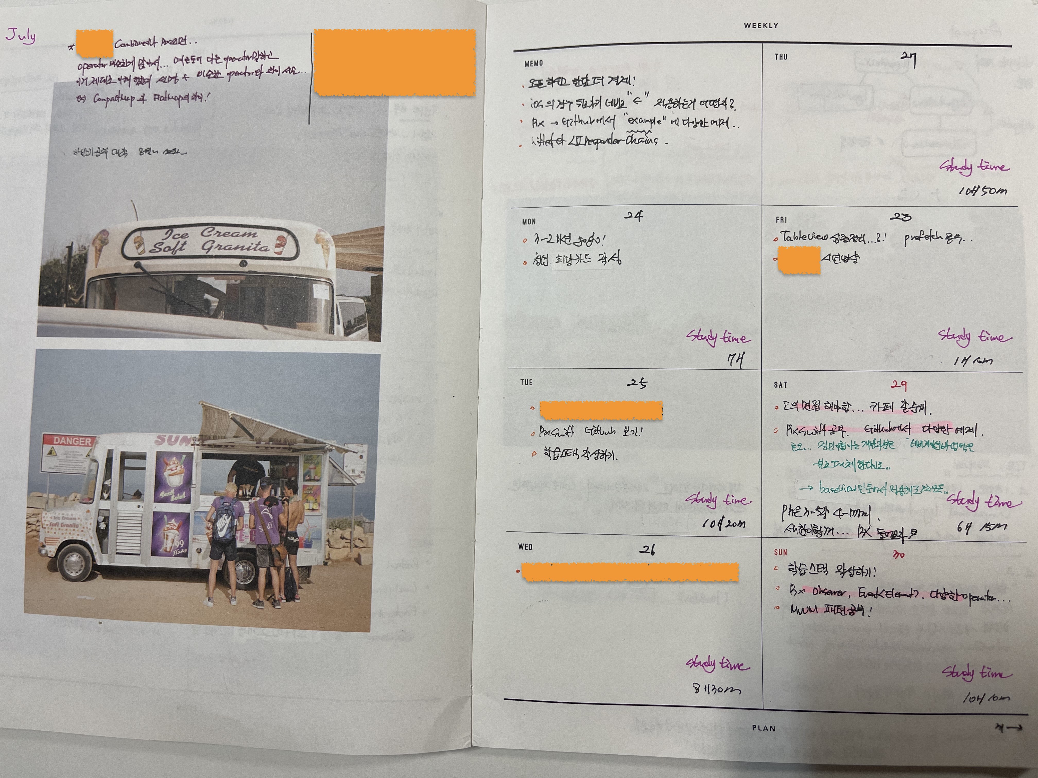 cf. 순수하게 iOS 공부, 개발 시간을 기록했었습니다. 강의나 세션 시간은 제외입니다!! ( 좌 우로 스크롤 )