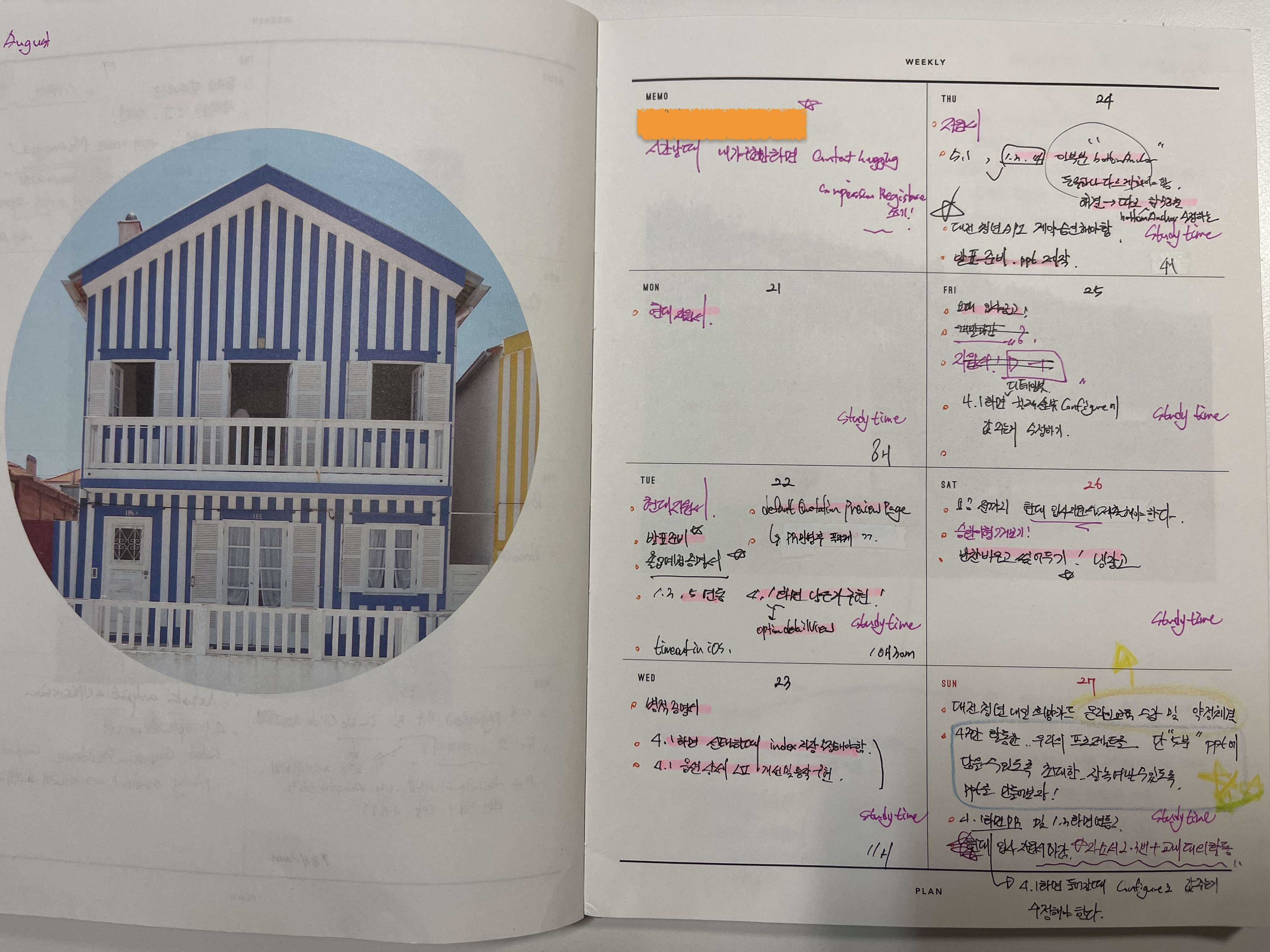 7월달에 매주 프로젝트할 때 1주일 간 제가 기능은 정말 많이 구현했는데, 단 3분이라는 시간 내에 ppt로 만들어 발표해야 했습니다. 어느 부분을 어떻게 어필을 하면 좋을지.. 이것도 정말 어렵고 요점을 시각화해서 발표하는게 중요하다는 것도 알게되었습니다.