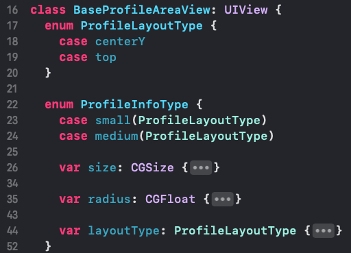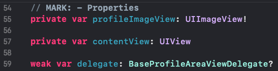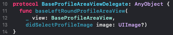 그리고 여기서 문제는 아니지만, 위임하는 것을 깜빡 할 문제가 발생할 수 있습니다. BaseProfileAreaView를 상속하는 다양한 sub view에서 발생되는 추가적인 델리게이트 프로토콜이 각각 생기는 것입니다. 이는 BaseProfileAreaView를 상속받는 하위 뷰에 따라 추가적인 델리게이트 프로토콜이 다양하다는 것입니다. 예를들어 위에서 언급했던 옵션버튼, 좋아요, 하트 버튼 등 ...