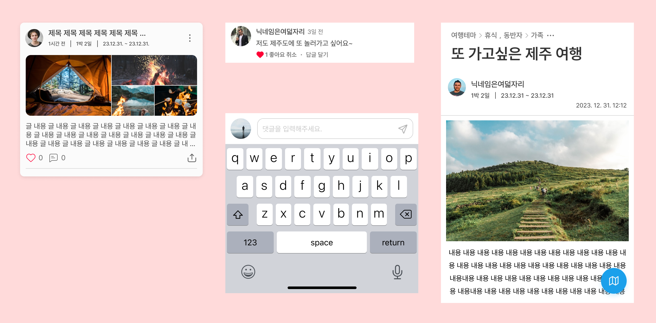 지금 개발중인 "여행을 가다" 앱에서는 위와 같은 컴포넌트들이 있습니다. 제가 생각했을 때 이 사진에서 공통적인 컴포넌트들 특징은 아래와 같습니다.