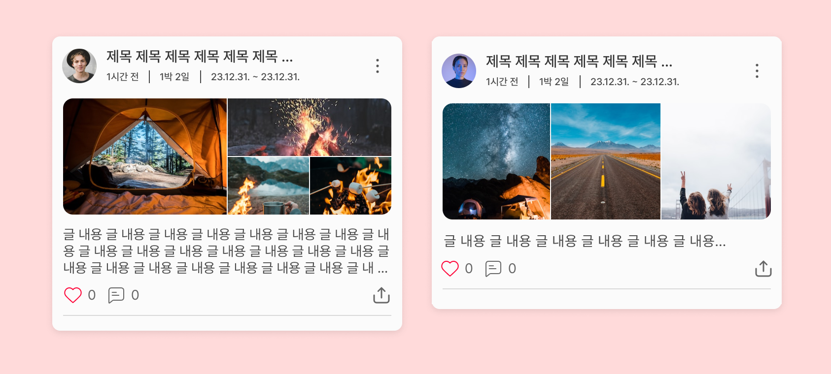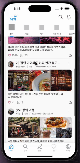 이번 포스트에서 컬랙션 뷰 flow layout으로 구현했던 기존 여행 앱 피드 화면을 compositional layout으로 리빌딩한 경험을 공유하려고 합니다: ]