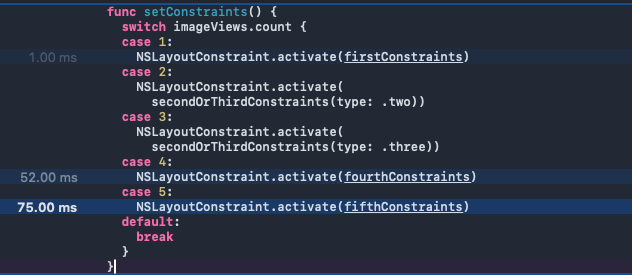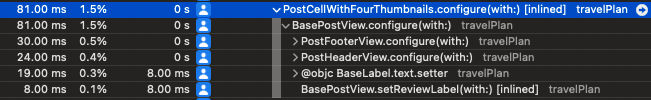 그리고 데이터가 4개인 경우 PostCellWithFourThumbnails 셀의 configure(with:)는 81ms를 수행했습니다.