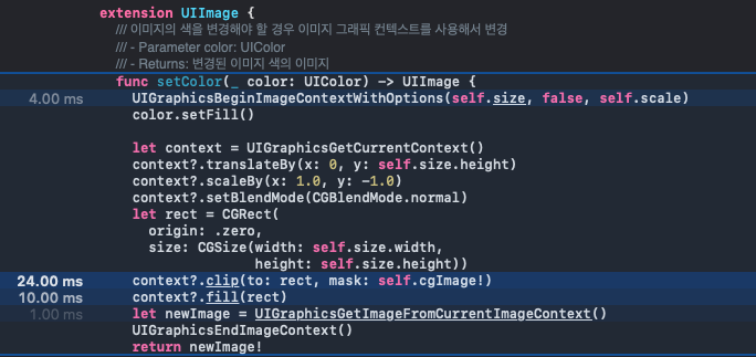 setColor(_:)함수는 정말 많이 사용하는 함수입니다. prepareForReuse()나 cell's dequeue시점 cell.configure(with:)등.. 여러 곳에서 많이 활용되는데요. 다음 포스트에선 이미지 색 변경할 때 UIGraphicsBeginImageContextWithOptions api말고 다른것을 사용해서 메모리 절약하는 글을 작성해보려고 합니다!