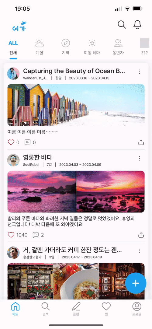 현재 개발중인 프로젝트의 피드 화면입니다!!