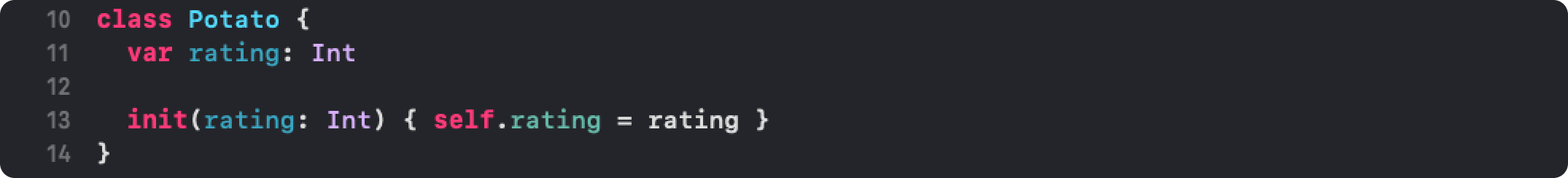 weak var potato1: AnyObjct? = Potato(rating: 10)