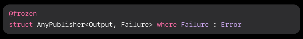 Publisher의 Upstream에서 서로 다른 operator들을 체이닝하며 연이어 호출하면 각각의 Operator의 Output 내부가 길어질 수 있습니다. 특정한 operator는 self: publisher를 Output으로 반환하기도 하기 때문입니다. 그러나 AnyPublisher<Self.Output, Self.Failure> 타입을 사용한다면, AnyPublisher가 방출하는 값을 명확하게 Output으로 지정하고 이를 준수하도록 반환하거나, type을 erase to AnyPublisher로 변환한다면 Output역시 단순해지게 됩니다😎.
