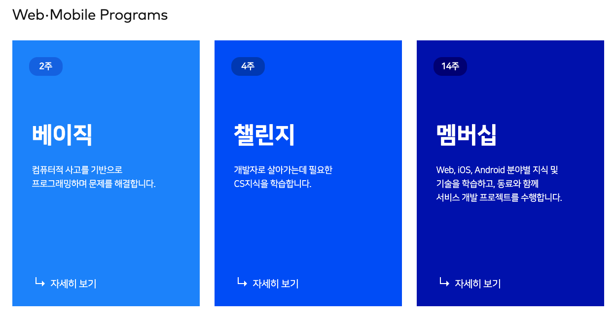 이번에는 1차 테스트, 베이직 활동 및 2차 테스트, 첼린지 활동 및 3차 테스트까지 총 3번의 테스트 과정을 통해 선발된 인원들이 본격적으로 "멤버쉽 활동"이라는 분야별(iOS, AOS, FE, BE) 캠프 활동을 진행하게 됩니다.