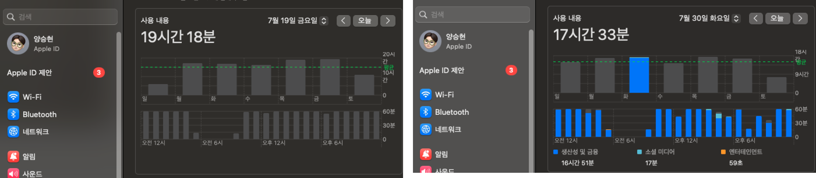 챌린지 활동 전, 평소에는 그래도 마감기한 같은게 없어서 평균적으로 8~12시간 공부를 하는데 챌린지 미션을 하면서 10시간 ~ 13시간 정도의 몰입시간을 유지를 했던 것 같습니다.(많이 시도 + 많이 배우기의 결과..?!)