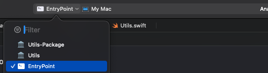 ( 참고로 빌드할 때 xcode에서 실행할 타겟 스킴은 EntryPoint -> Utils로 변경!! )