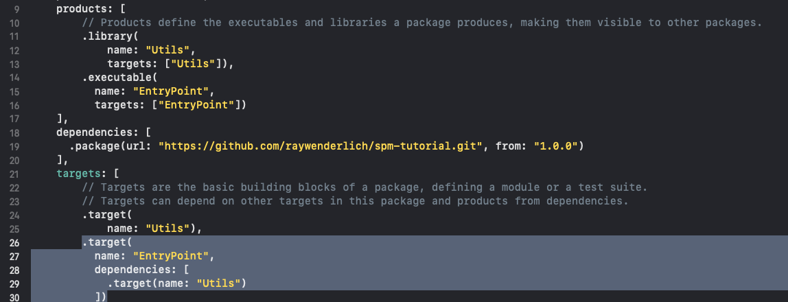 .package(url: "https://github.com/raywenderlich/spm-tutorial.git", from: "1.0.0")