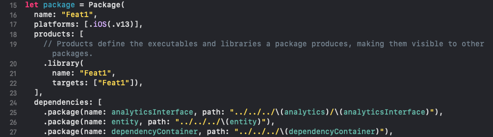 사진속의 경우(.product) 명확하게, 외부 패키지의 product를 명시적으로 지정할 수 있습니다. 내부 Dependencies의 패키지들 또한 마찬가지입니다.