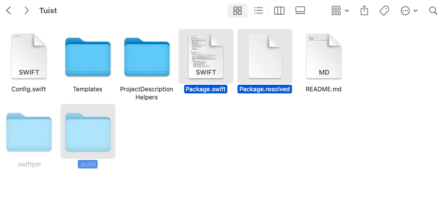 이 Package.swift파일 추가한 곳에서 Package.swift가 빌드될 때(tuist init - tuist generate) Tuist는 내부 빌드 수행하고 디렉터리에 .build파일을 만듭니다.