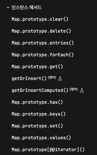 keys(), values(), entries() 보면 알겠지만 Map Iterator를 반환한다. 그래서 reduce같은 함수를 쓰고 싶어도 쓸 수 없다. (참고로 Iterator는 프로토콜)