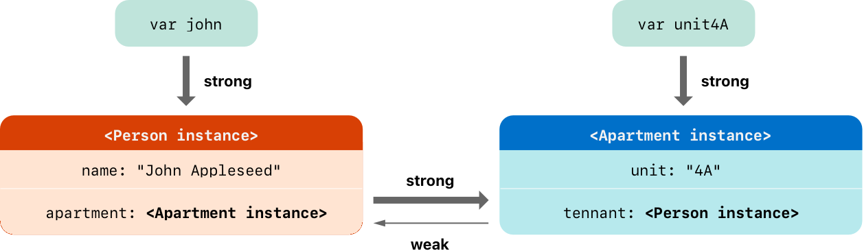또한 해당 인스턴스와 연관되어 저장된 프로퍼티도 메모리에 ARC에 의해 할당된다.