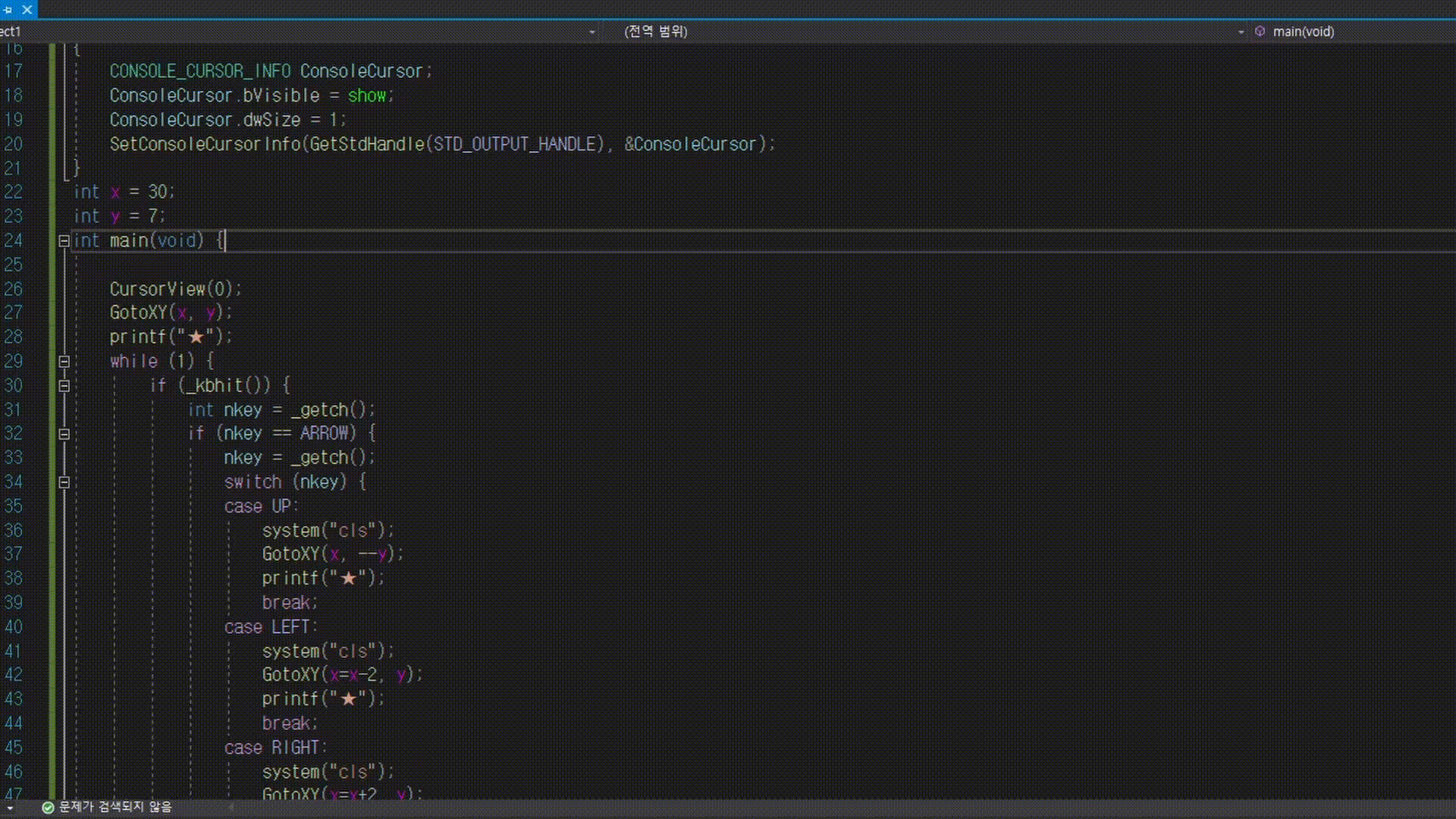 콘솔 창에서 방향키 인식 및 이동하는 방법에 대해서