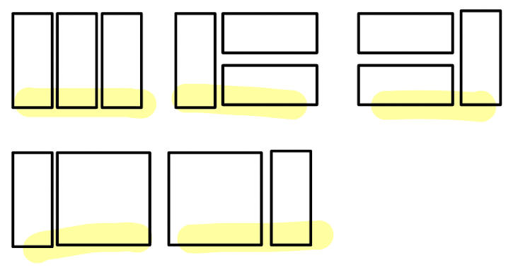 맨 왼쪽에 1*2, 2*2 , 2*1 2개를 놓는 방식으로 크게 3가지 경우로 나눠서 구했다.