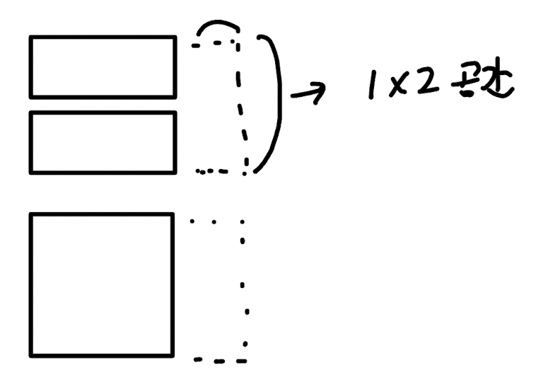맨 왼쪽에 1*2 타일 놓는다 가정했을 때