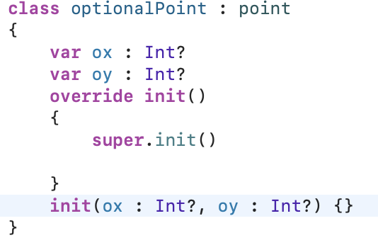 이 매개변수 있는 init(ox : Int?, oy : Int?) {} 이 메서드는 override를 써주어야 하는가?