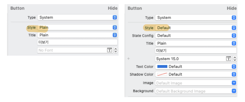 어트리뷰트 인스펙터 탭 -> style -> Default로 바꾸면 된다.